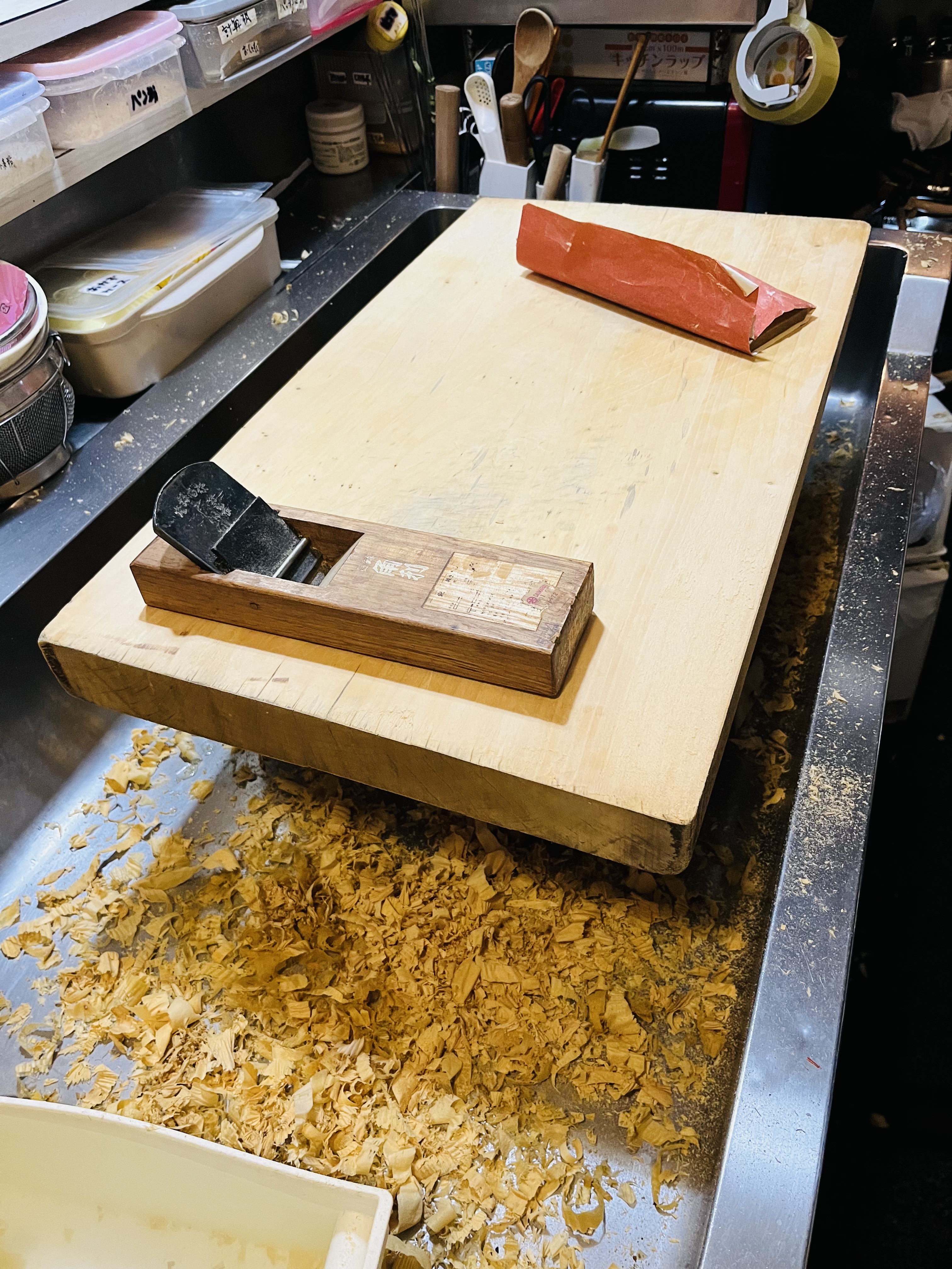 下町の小さな和食店の店主、和のごはんみかづき板垣ミカコです^_^ 今日はこれから来るはず(笑)「秋冬の繁忙期」にかけて、準備を整えている報告です。 板前さんと言う言葉がある通り、「まな板」はとっても大事なもの。 私も毎日、まな板の前に立って仕事をしております。 しかしながら、日々の忙しさにかまけて「まな板」の手入れをしていなかったのです。そこでやっと愛用のまな板をいたわることができました残暑厳しい9月の初めのこと。 画像は電動カンナで削り、(この作業外でしていたら、常連さんに声かけられましたが、お店は開けられません。ごめんなさい! 2時間はかかりました。) 仕上げはやはり手作業の「手動カンナ」で仕上げました。 そして、さらに紙やすりで、木屑を取り除いていきます。1時間たっぷりかかる。 つるつるすべすべのまな板で切る食材、そこから生まれるお料理。私の愛情を感じていただけたら幸いです。切れ味も味のうちですから それではまた皆様とお会いしたく 存じ上げます。^_^